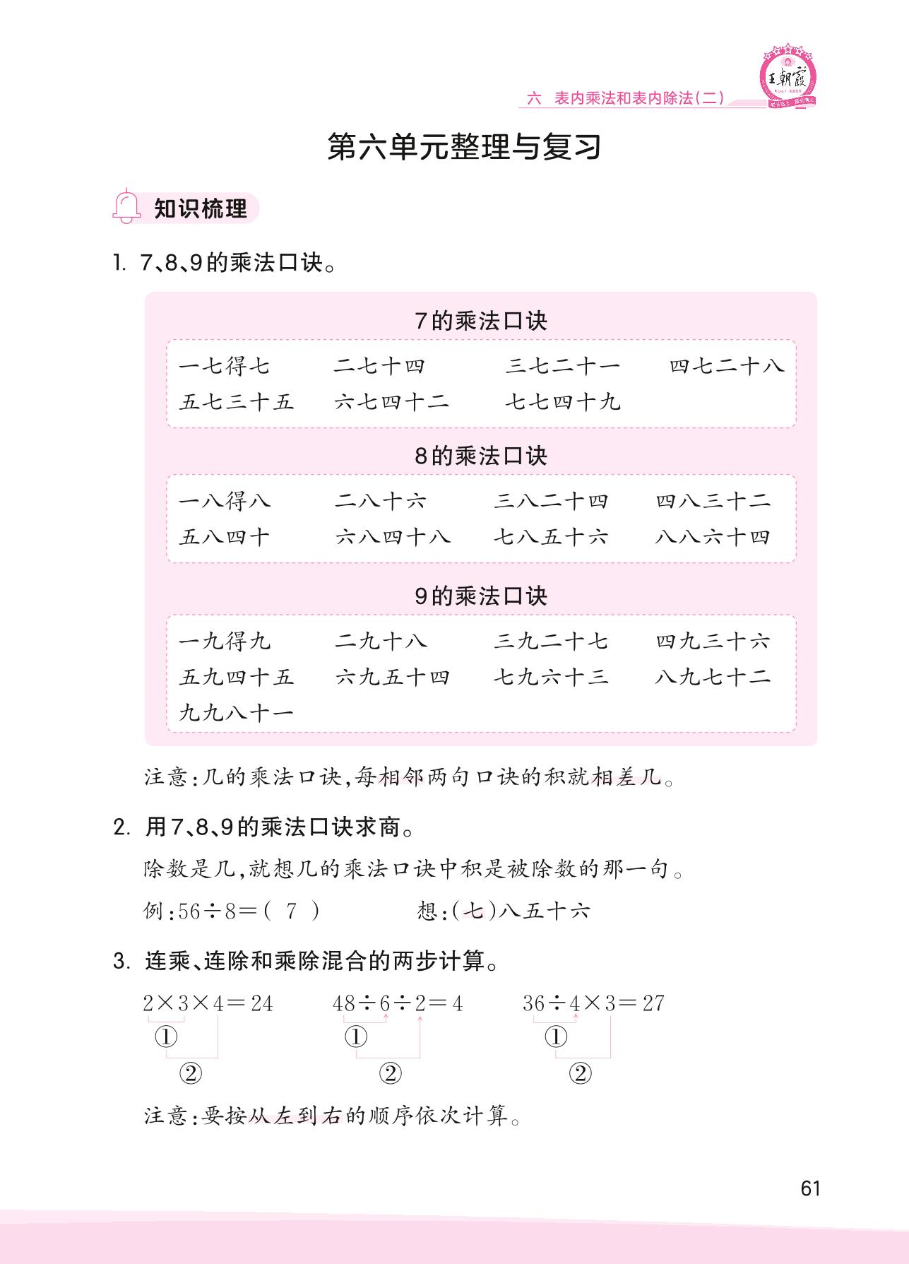 2023上册二年级数学苏教版 第六单元整理与复习