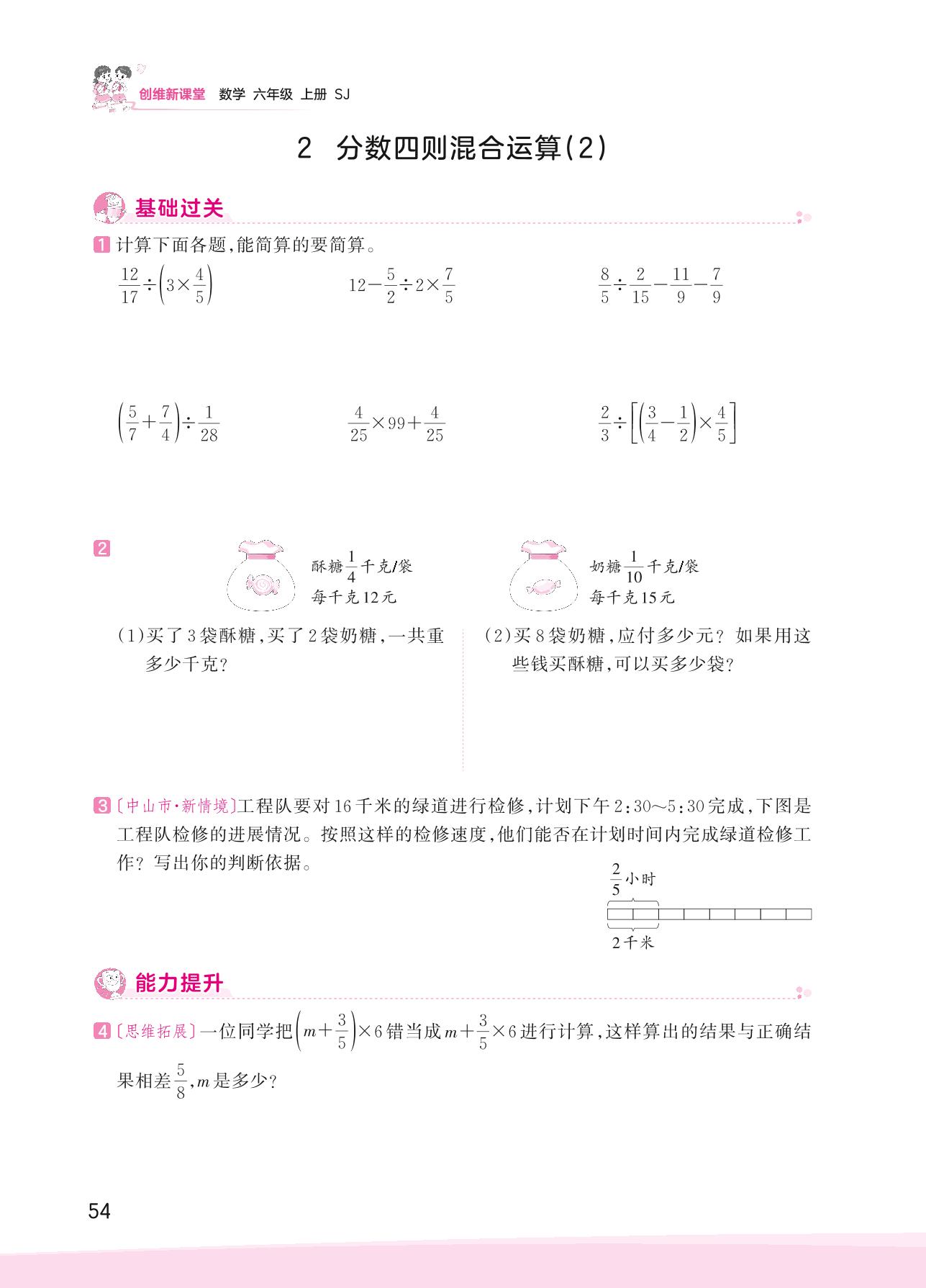 2023上册六年级数学苏教版 五 分数四则混合运算——2 分数四则混合运算(2)