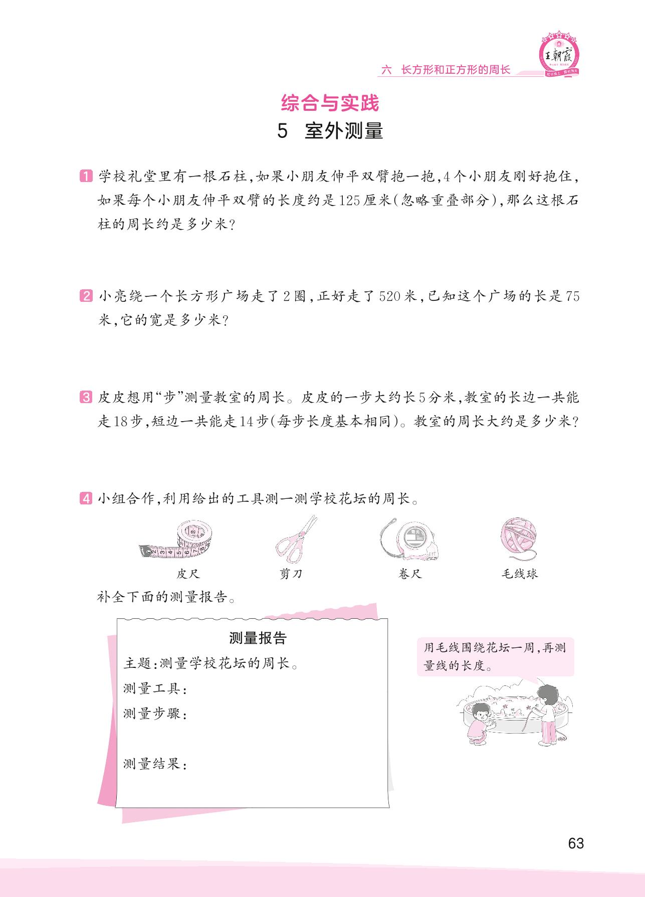 2023上册三年级数学冀教版 六 长方形和正方形的周长——5 室外测量