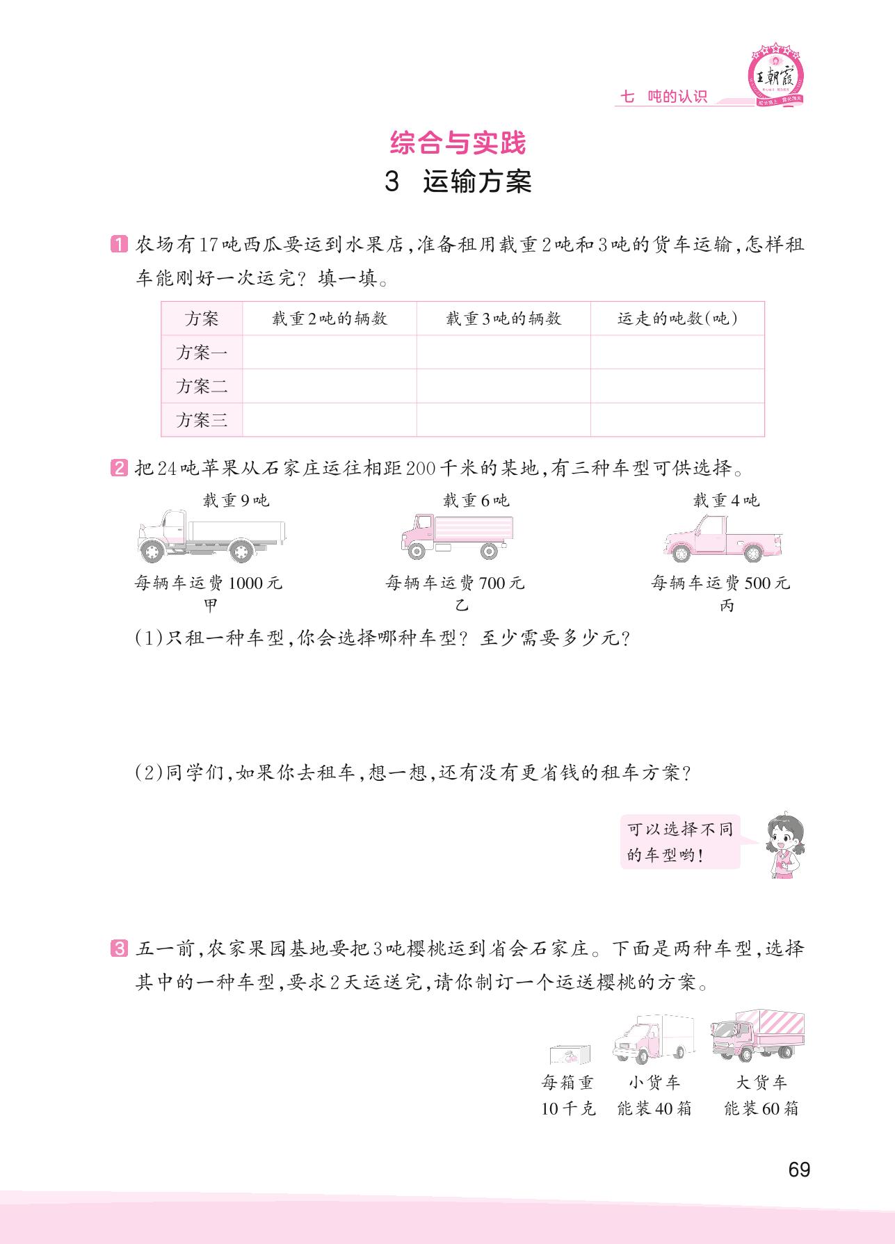 2023上册三年级数学冀教版 七 吨的认识——3 运输方案