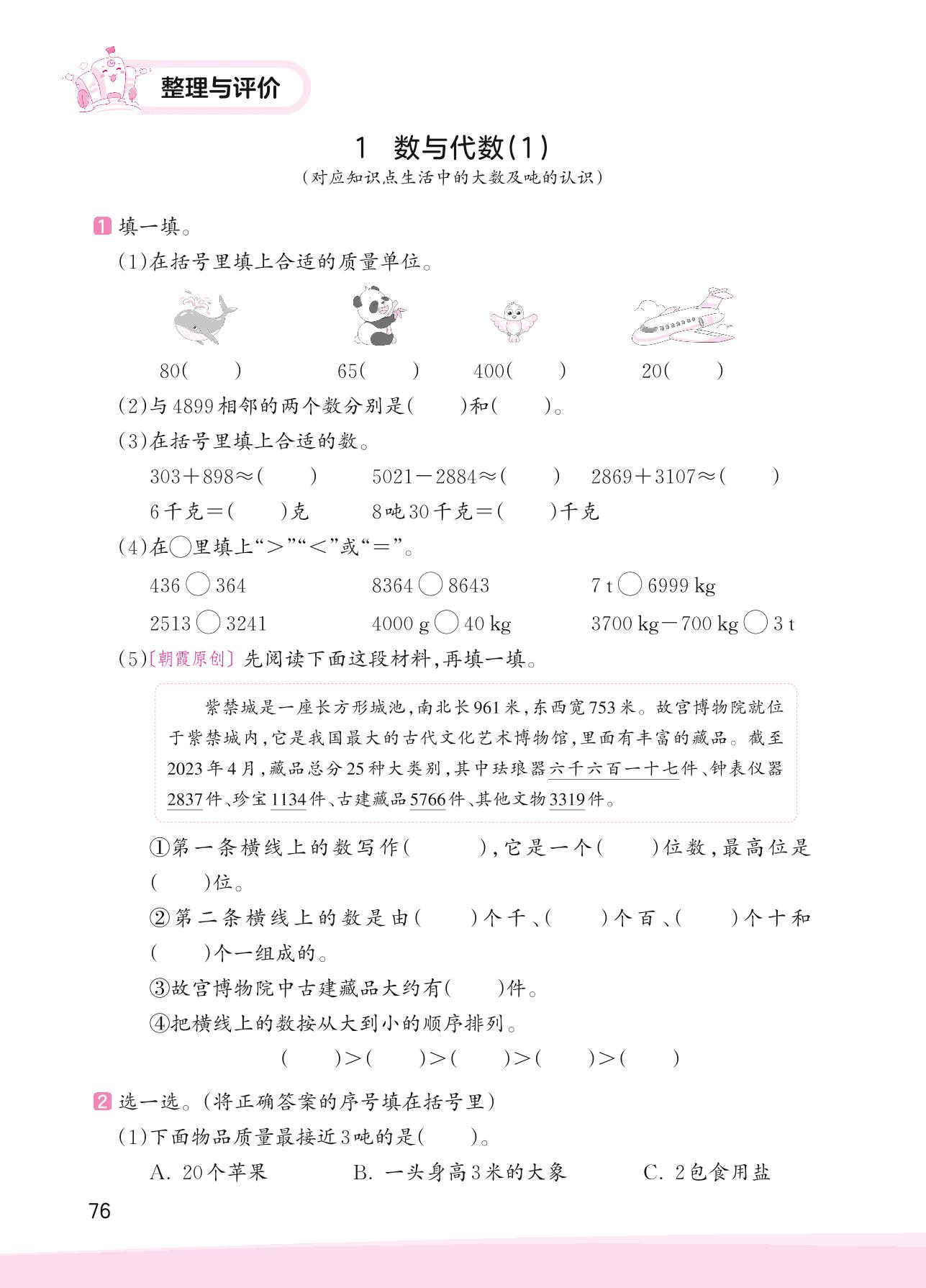 2023上册三年级数学冀教版 整理与评价——1 数与代数(1)