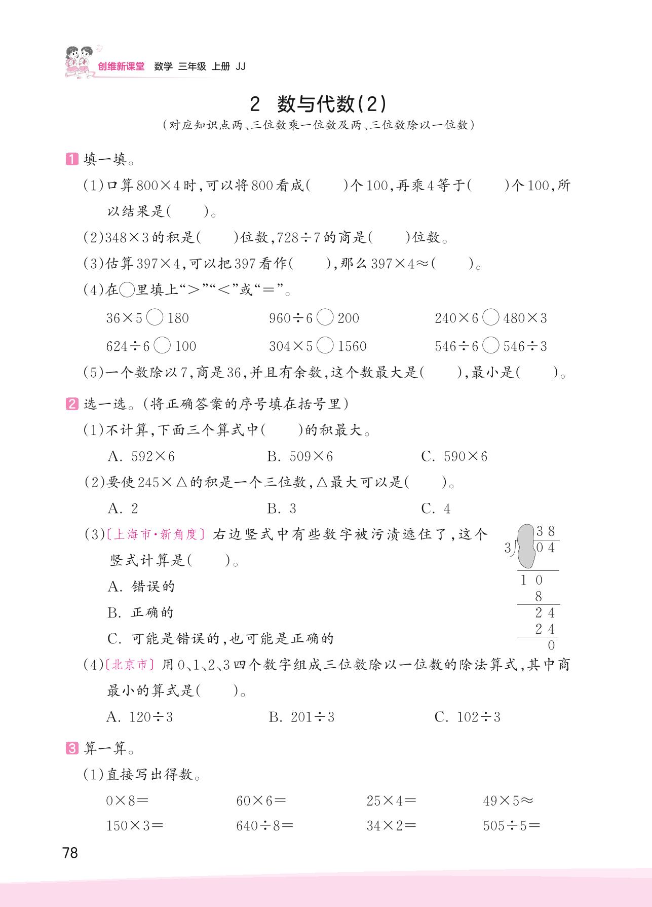 2023上册三年级数学冀教版 整理与评价——2 数与代数(2)