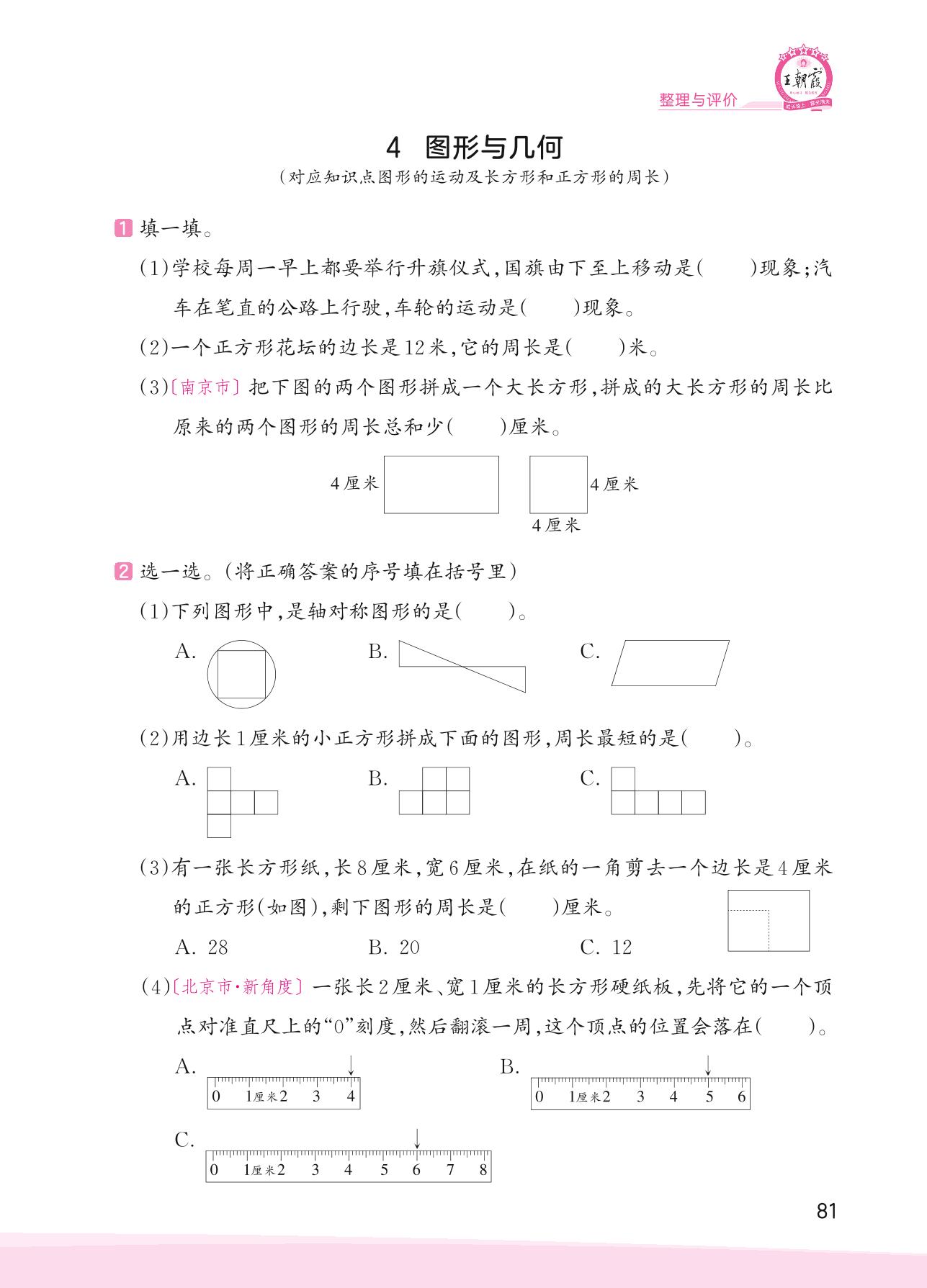 2023上册三年级数学冀教版 整理与评价——4 图形与几何