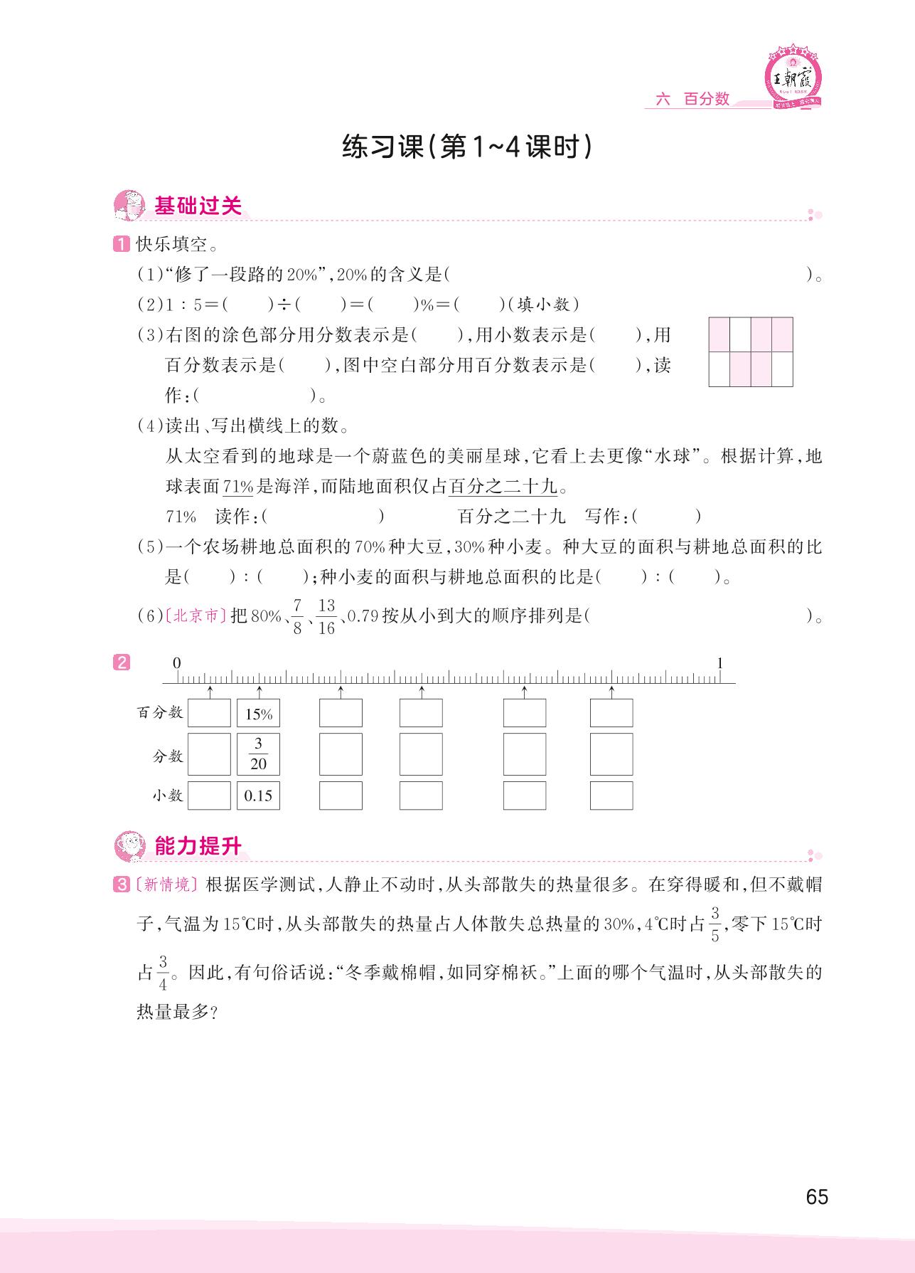 2023上册六年级数学苏教版 六 百分数——练习课(第1~4课时)