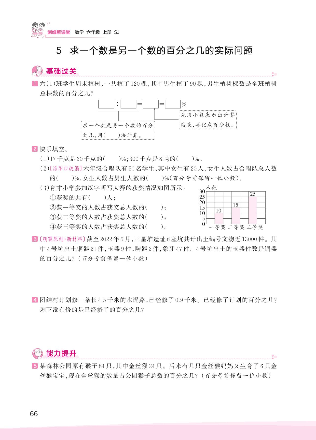 2023上册六年级数学苏教版 六 百分数——5 求一个数是另一个数的百分之几的实际问题