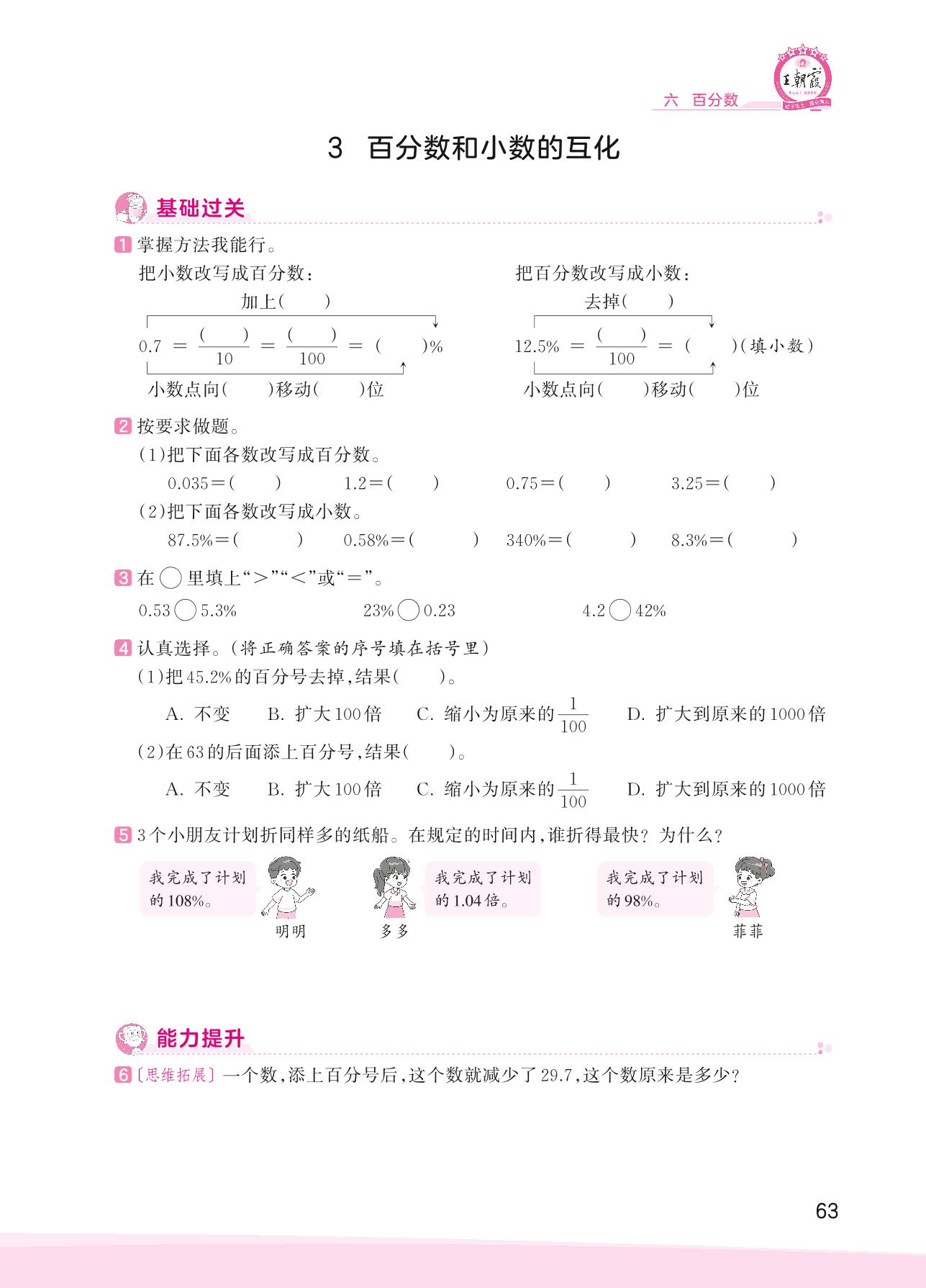 2023上册六年级数学苏教版 六 百分数——3 百分数和小数的互化