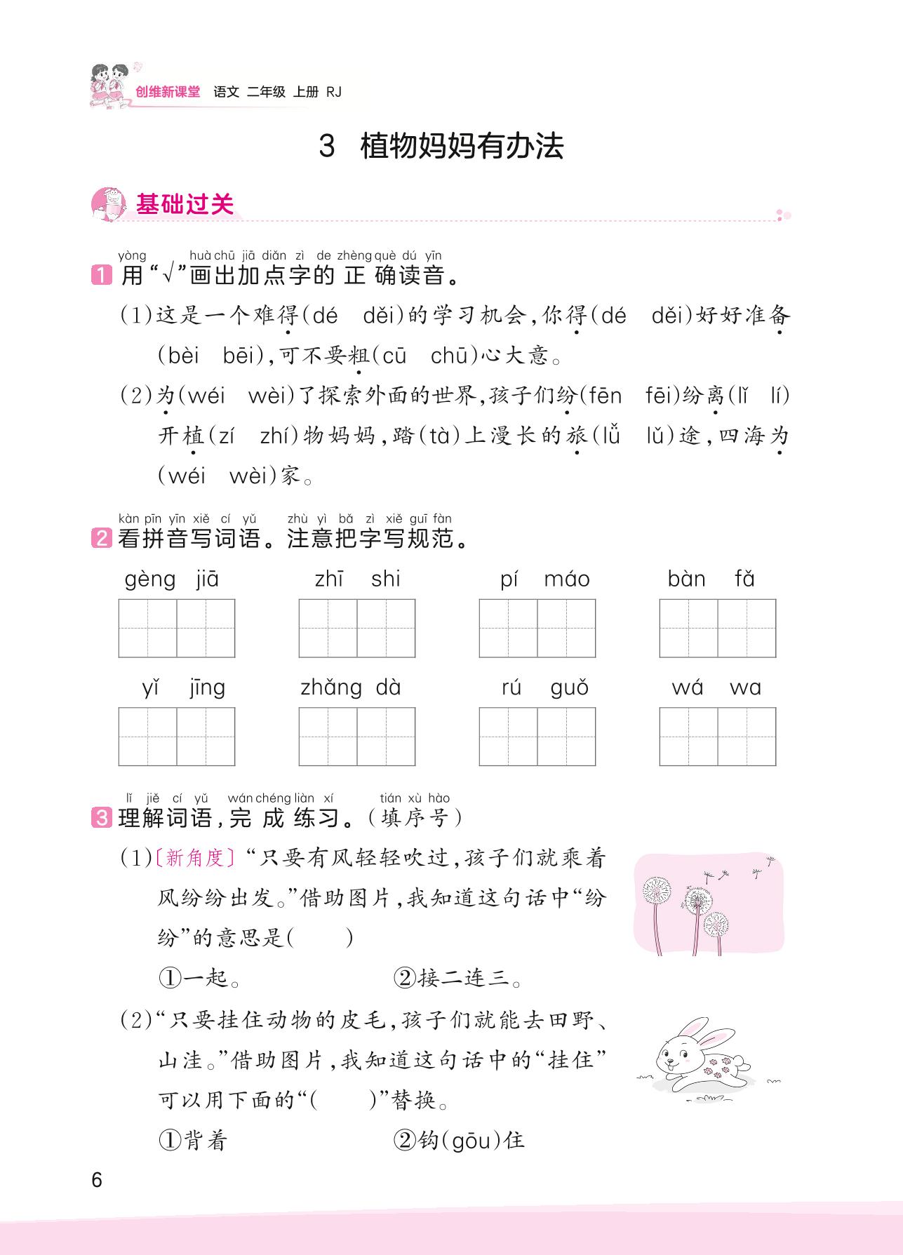 2023上册二年级语文人教版 第一单元 大自然的秘密——3 植物妈妈有办法