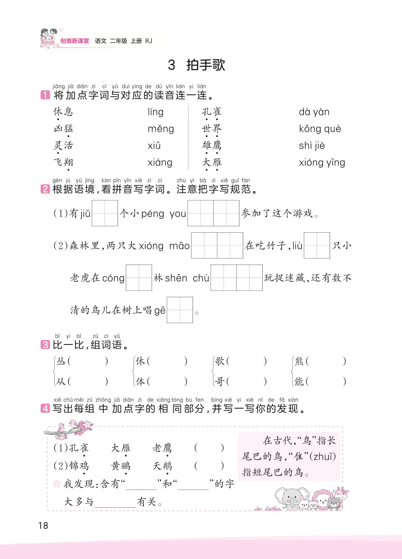2023上册二年级语文人教版 第二单元 识字——3 拍手歌
