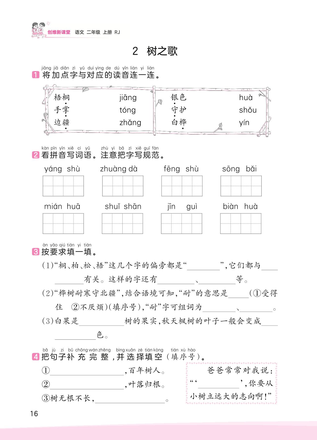2023上册二年级语文人教版 第二单元 识字——2 树之歌
