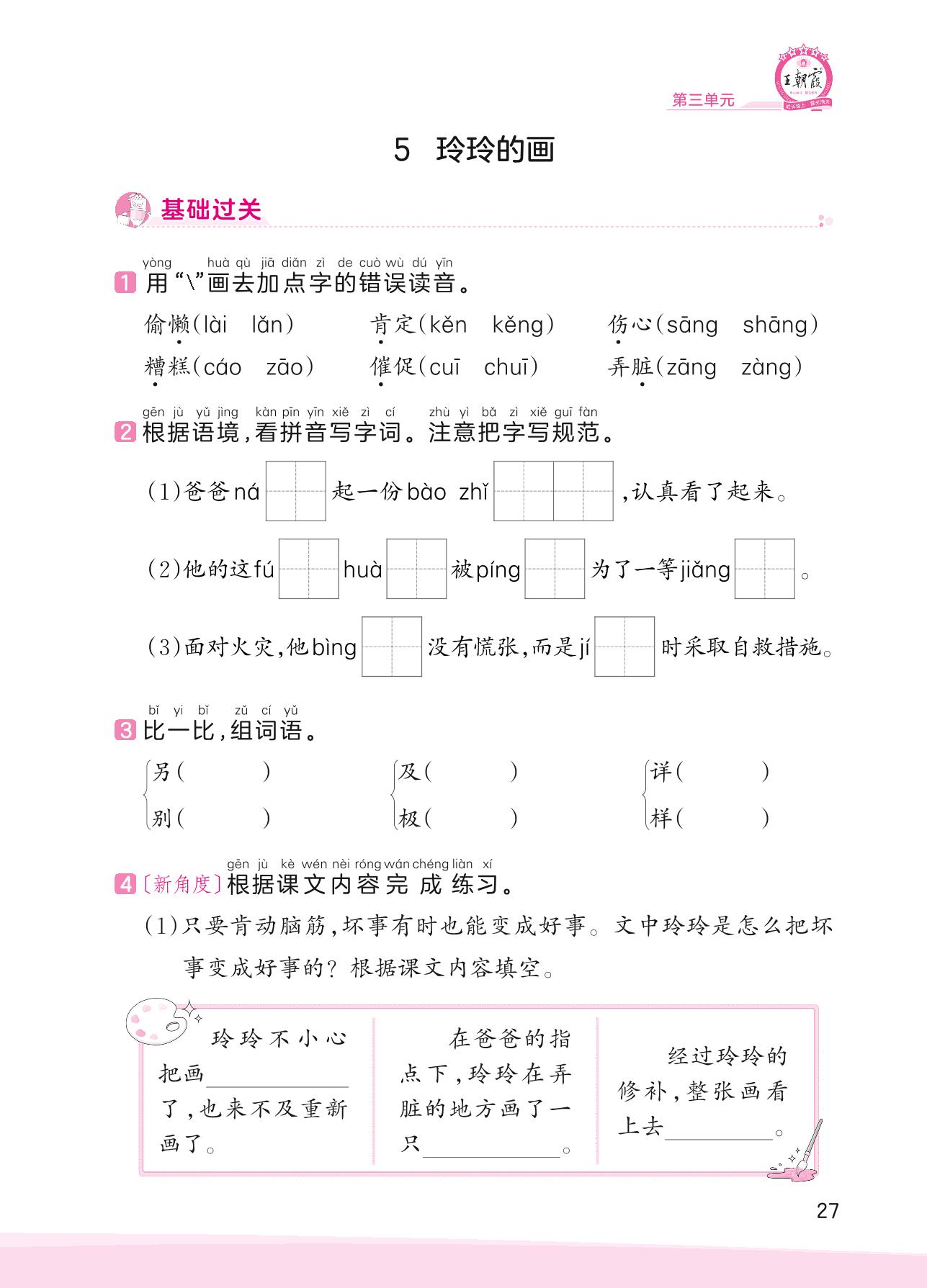 2023上册二年级语文人教版 第三单元 儿童生活——5 玲玲的画