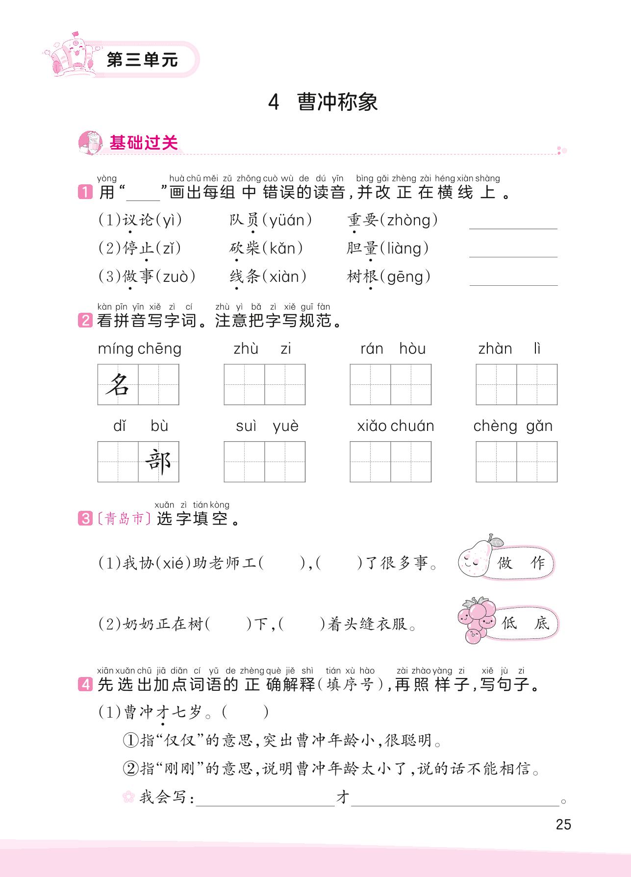 2023上册二年级语文人教版 第三单元 儿童生活——4 曹冲称象