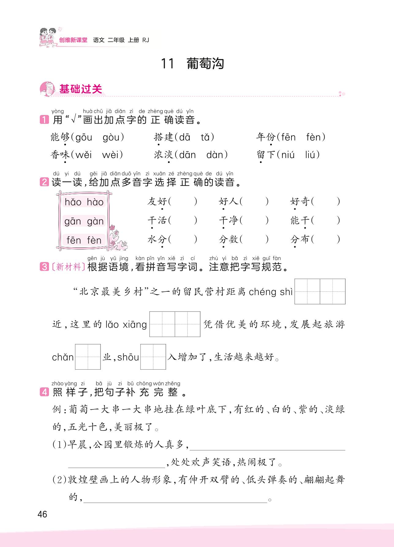 2023上册二年级语文人教版 第四单元 家乡——11 葡萄沟