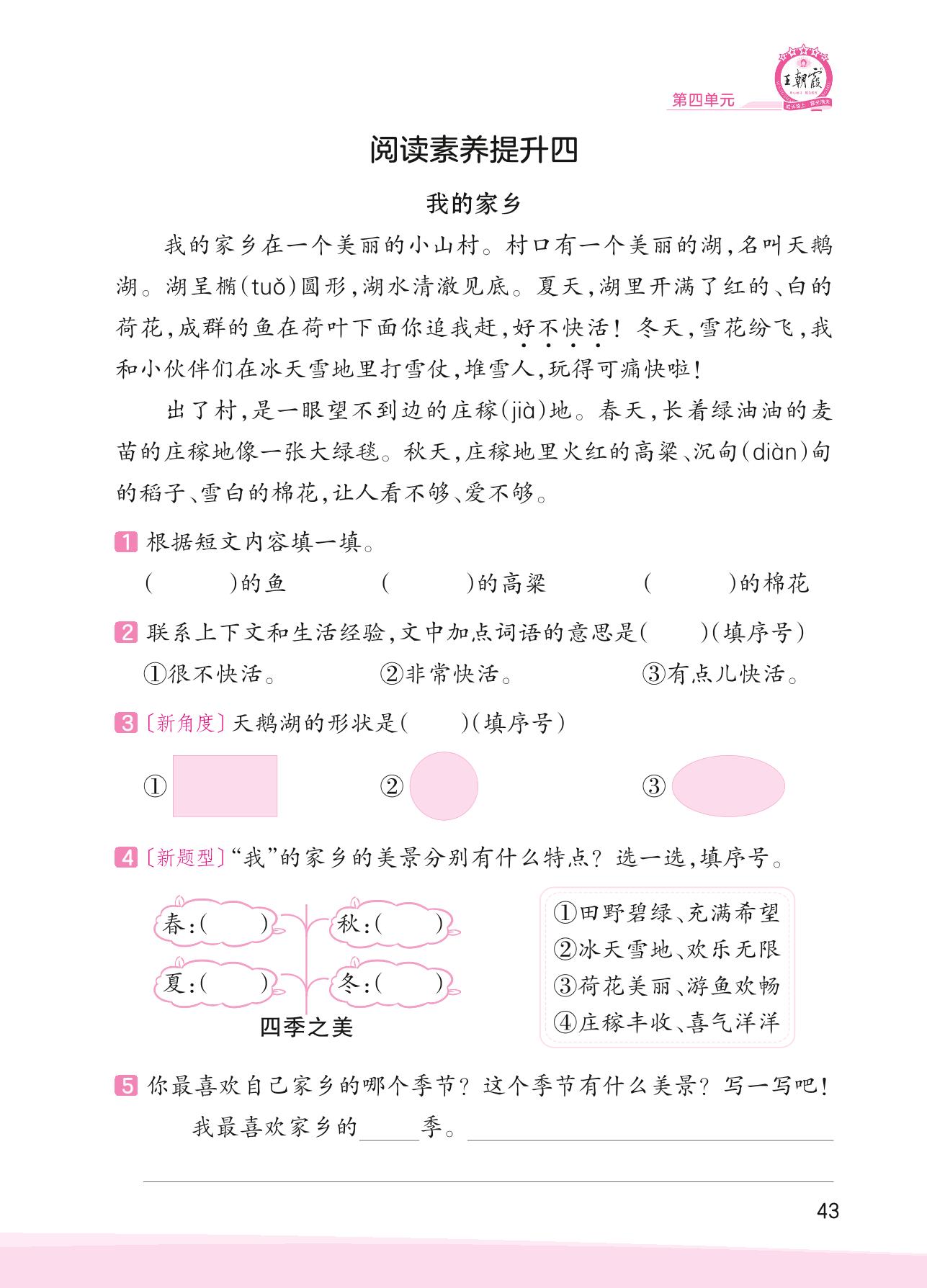 2023上册二年级语文人教版 第四单元 家乡——阅读素养提升四