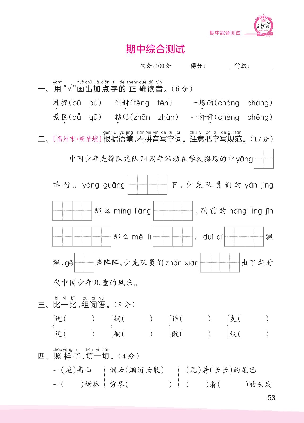 二年级语文人教版上册期中卷