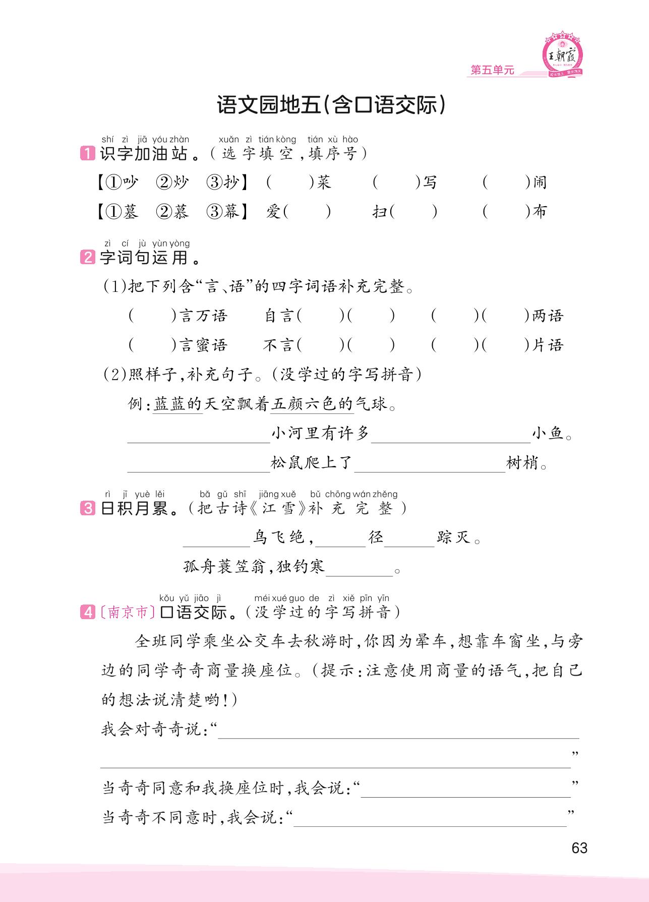 2023上册二年级语文人教版 第五单元 思维方法——语文园地五[含口语交际]