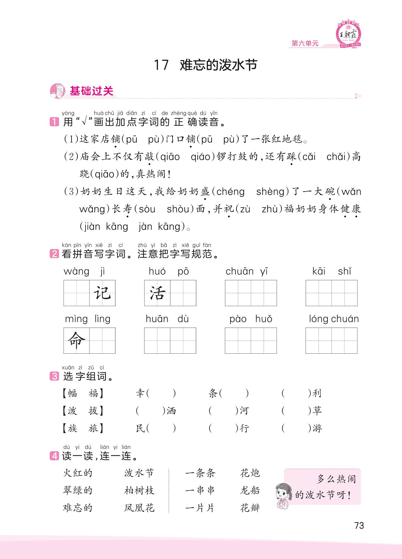 2023上册二年级语文人教版 第六单元 革命先辈——17 难忘的泼水节