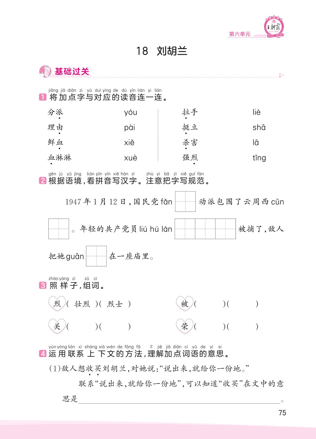 2023上册二年级语文人教版 第六单元 革命先辈——18 刘胡兰
