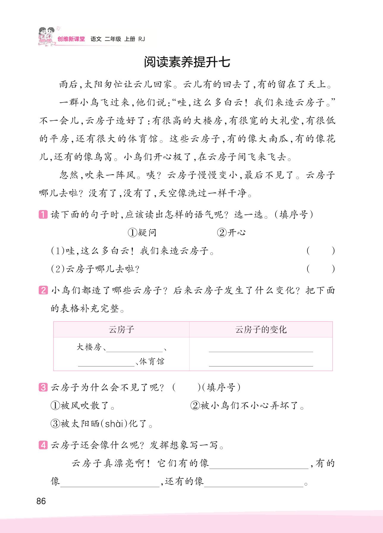 2023上册二年级语文人教版 第七单元 想象——阅读素养提升七