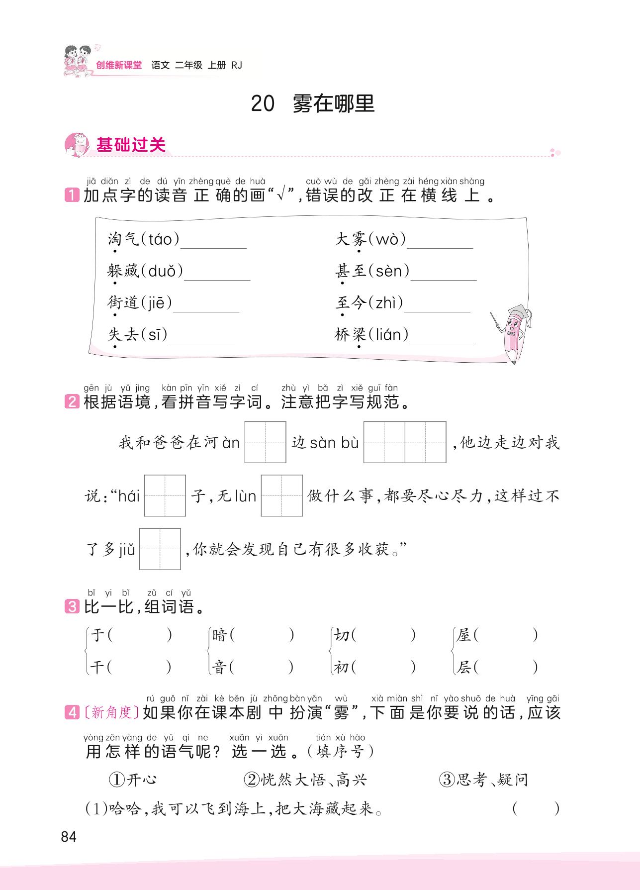 2023上册二年级语文人教版 第七单元 想象——20 雾在哪里