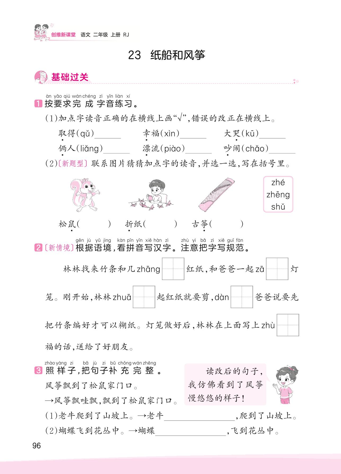 2023上册二年级语文人教版 第八单元 相处——23 纸船和风筝
