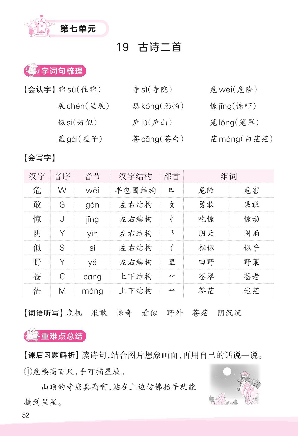 2023上册二年级语文人教版 助学手册 第七单元——19 古诗二首