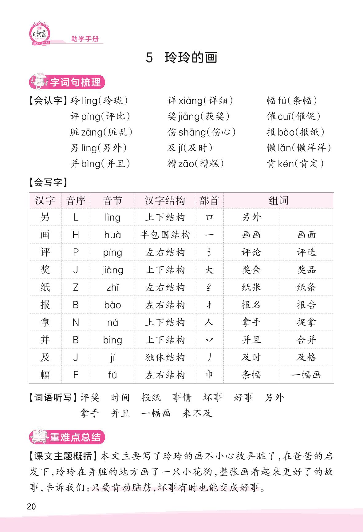 2023上册二年级语文人教版 助学手册 第三单元——5 玲玲的画