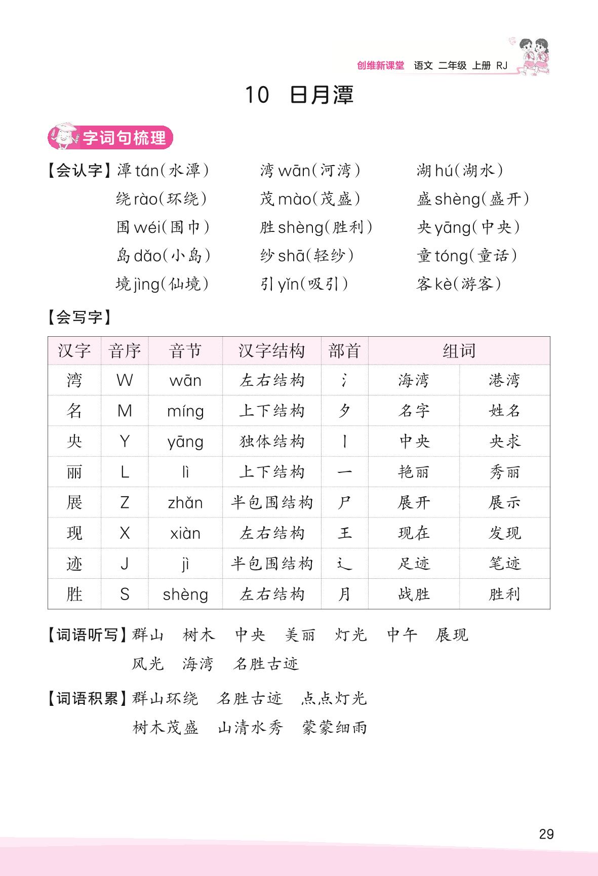 2023上册二年级语文人教版 助学手册 第四单元——10 日月潭
