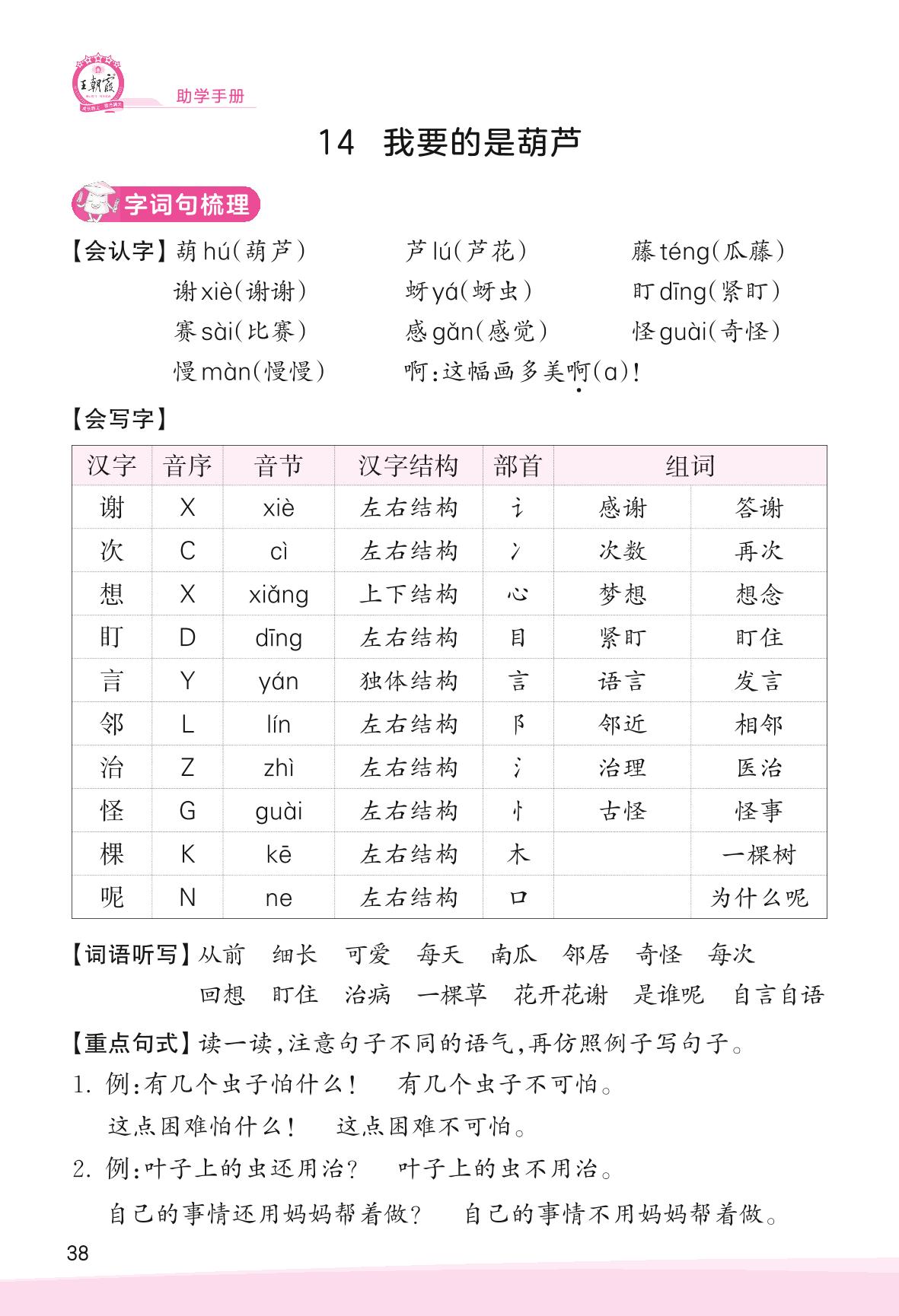 2023上册二年级语文人教版 助学手册 第五单元——14 我要的是葫芦