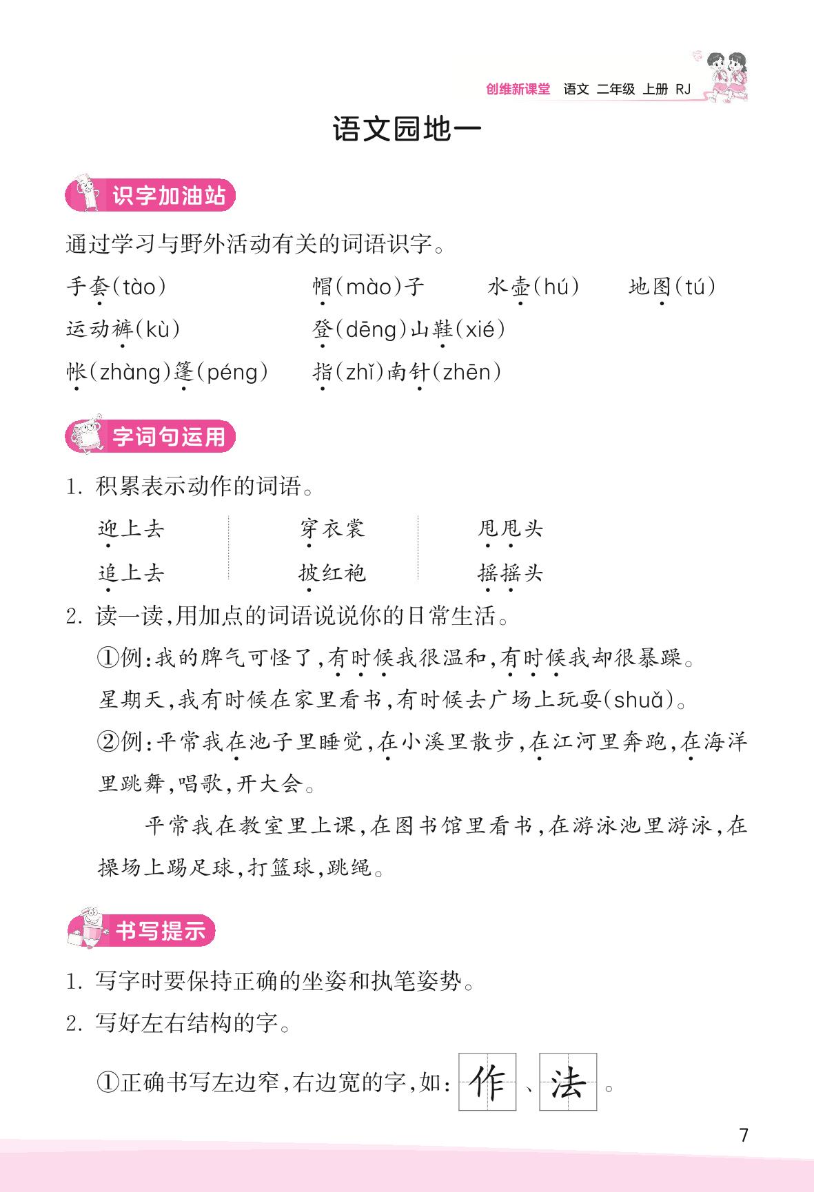 2023上册二年级语文人教版 助学手册 第一单元——语文园地一