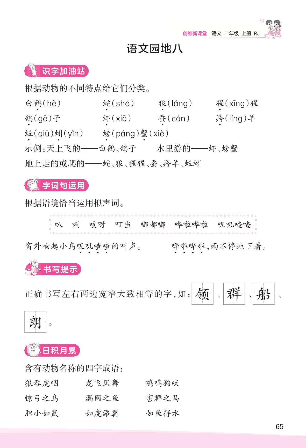 2023上册二年级语文人教版 助学手册 第八单元——语文园地八