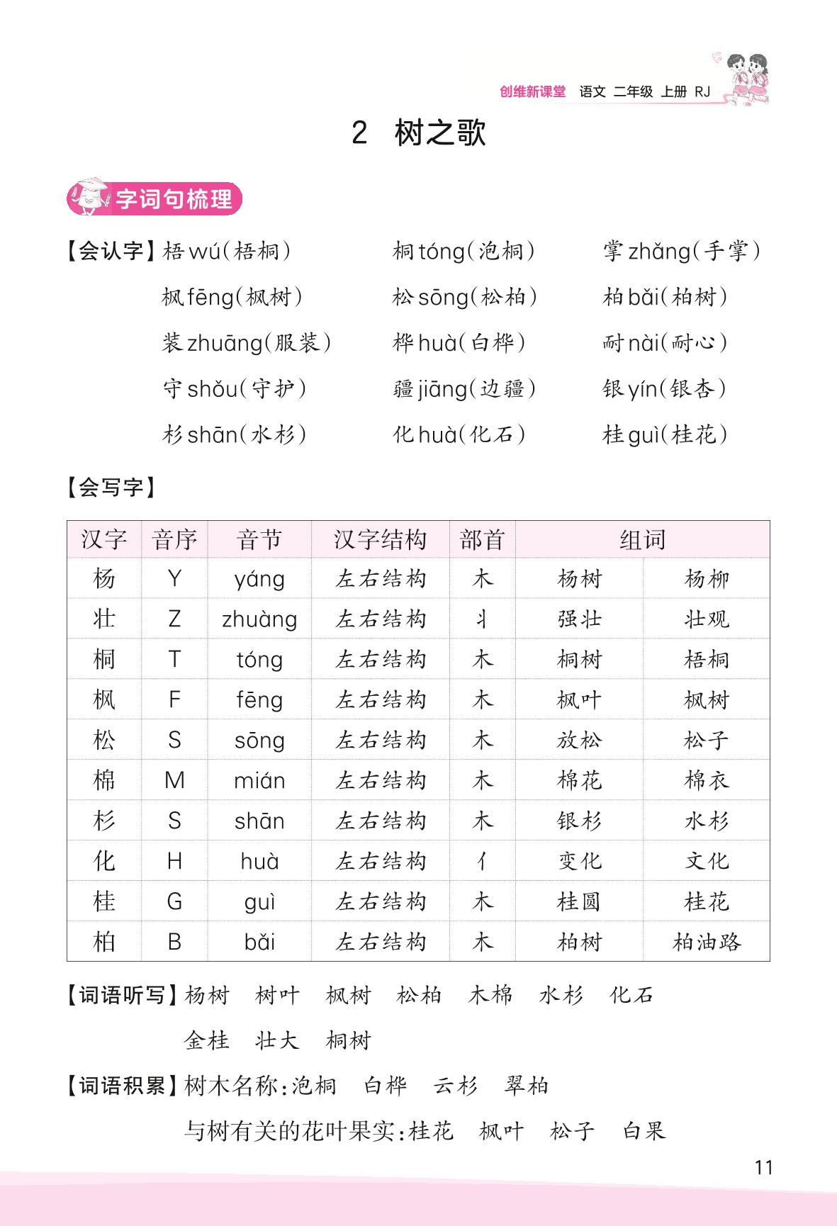 2023上册二年级语文人教版 助学手册 第二单元——2 树之歌