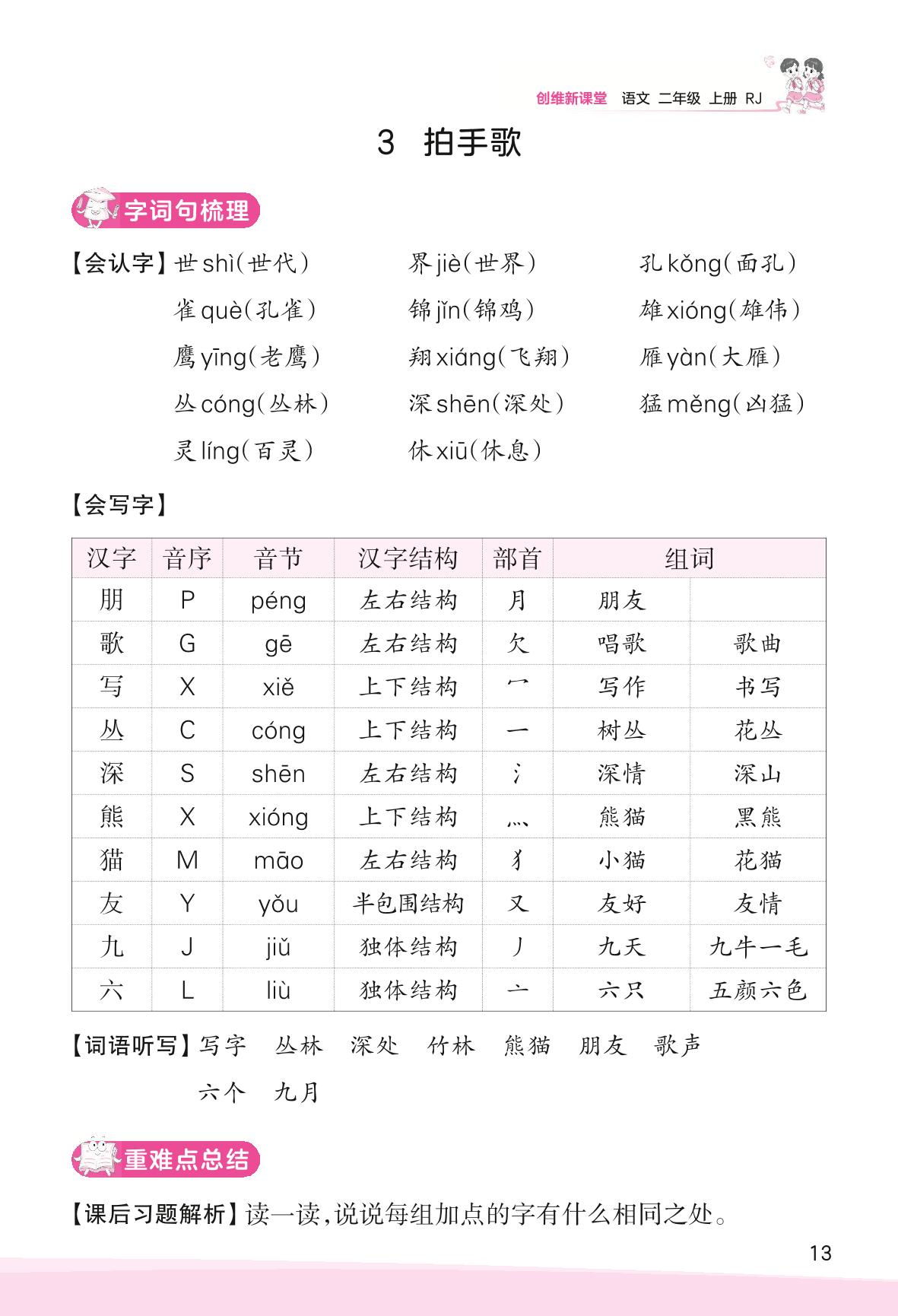 2023上册二年级语文人教版 助学手册 第二单元——3 拍手歌