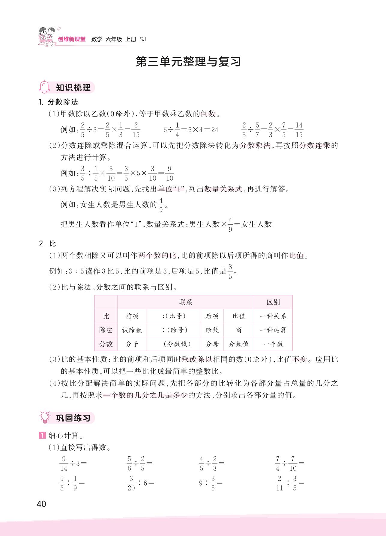 2023上册六年级数学苏教版 第三单元整理与复习