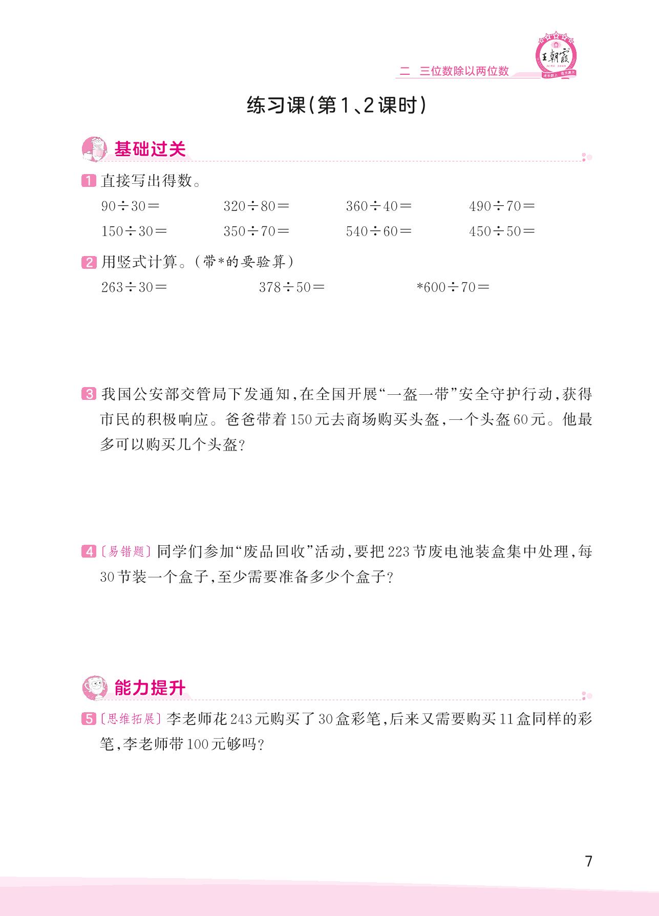 2023上册四年级数学冀教版 二 三位数除以两位数——练习课(第1、2课时)