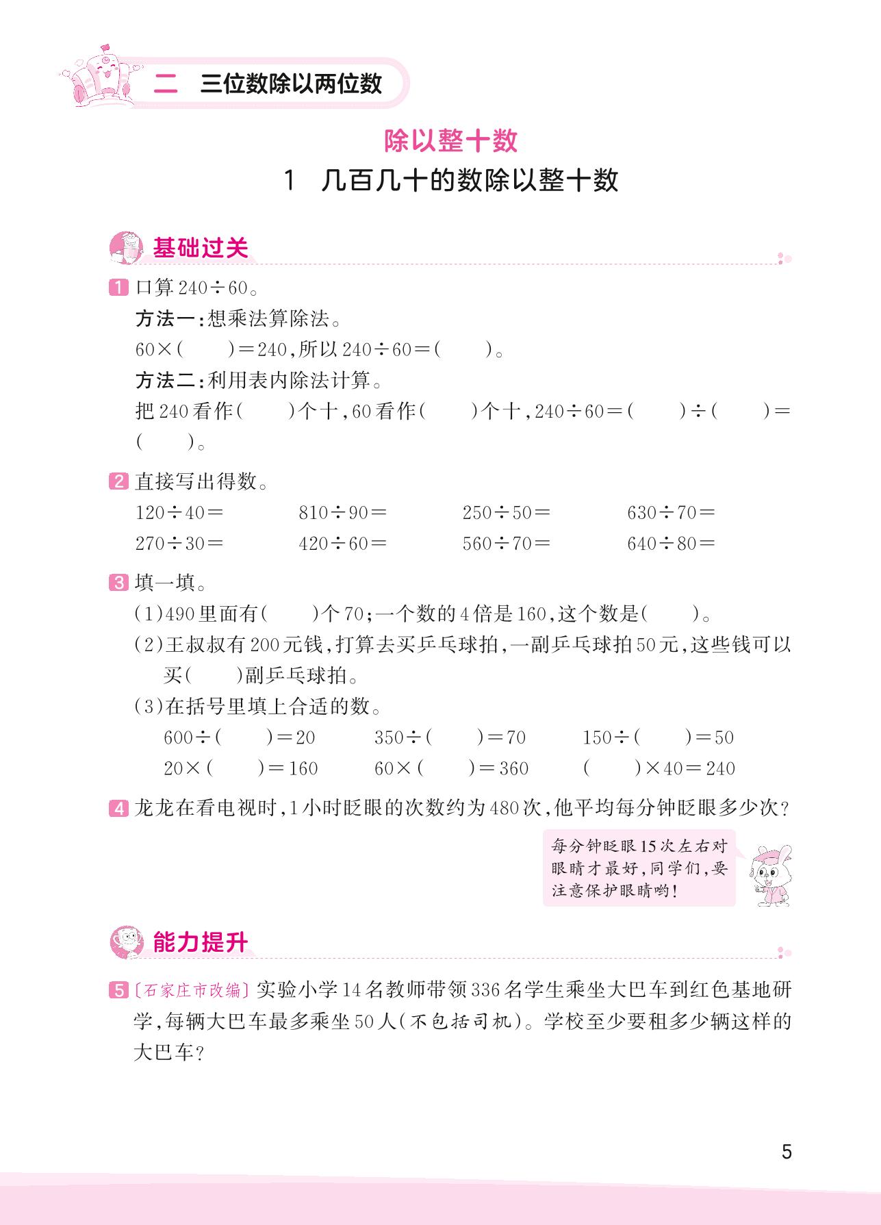 2023上册四年级数学冀教版 二 三位数除以两位数——1 几百几十的数除以整十数