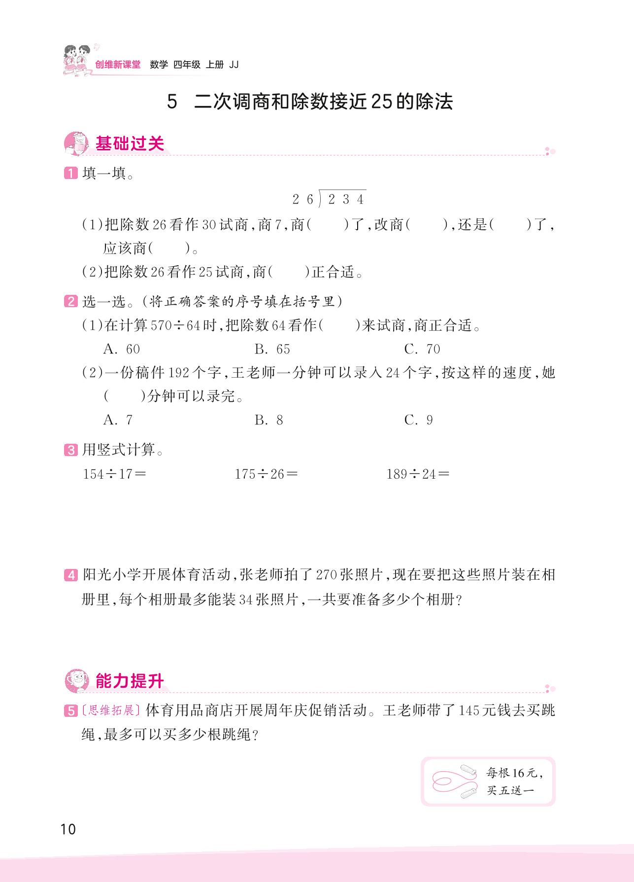 2023上册四年级数学冀教版 二 三位数除以两位数——5 二次调商和除数接近25的除法