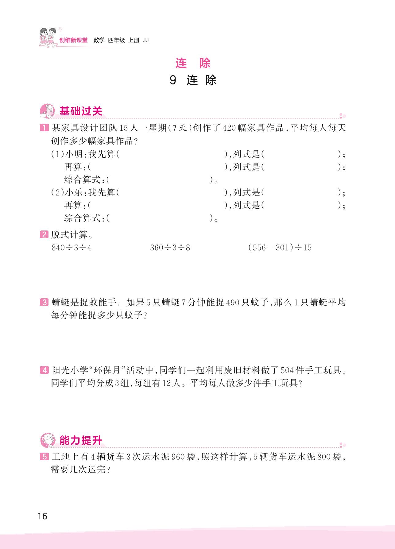 2023上册四年级数学冀教版 二 三位数除以两位数——9 连除