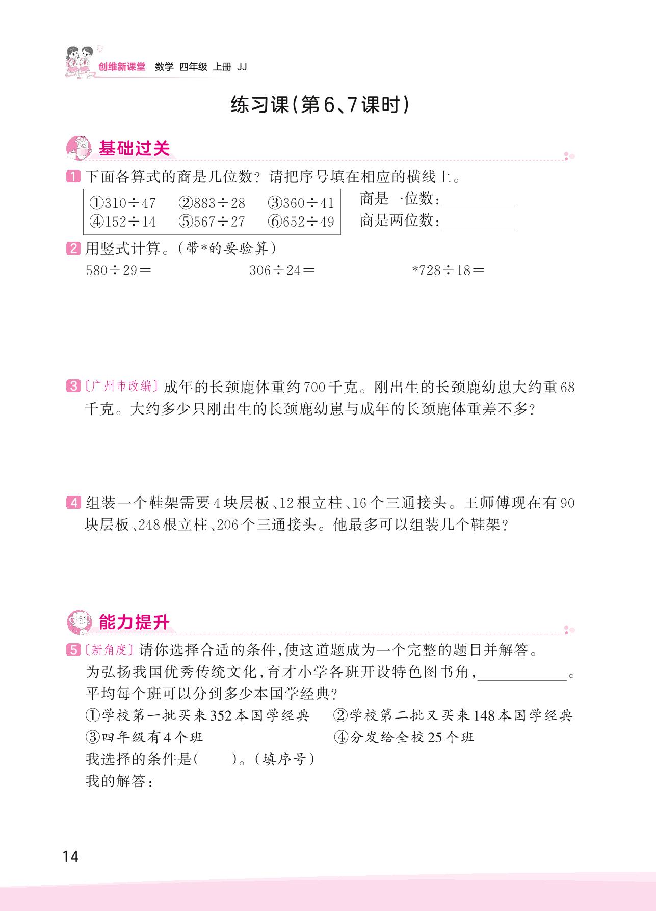 2023上册四年级数学冀教版 二 三位数除以两位数——练习课(第6、7课时)