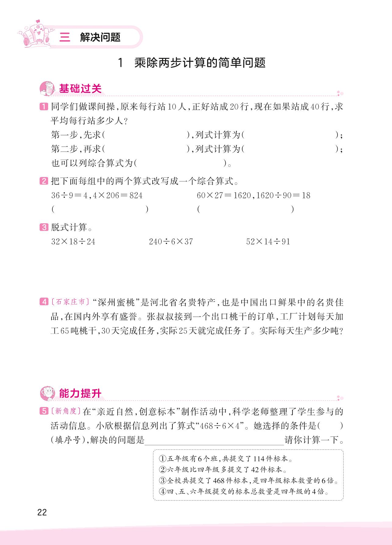 2023上册四年级数学冀教版 三 解决问题——1 乘除两步计算的简单问题