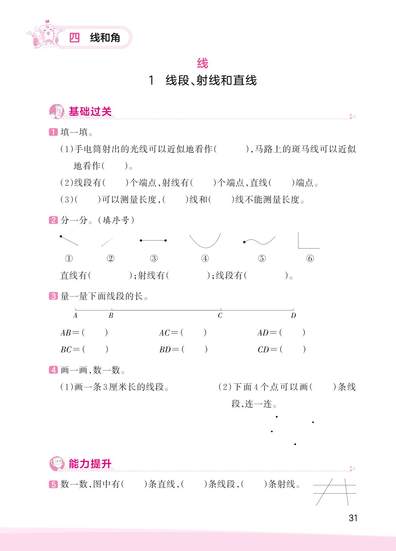 2023上册四年级数学冀教版 四 线和角——1 线段、射线和直线