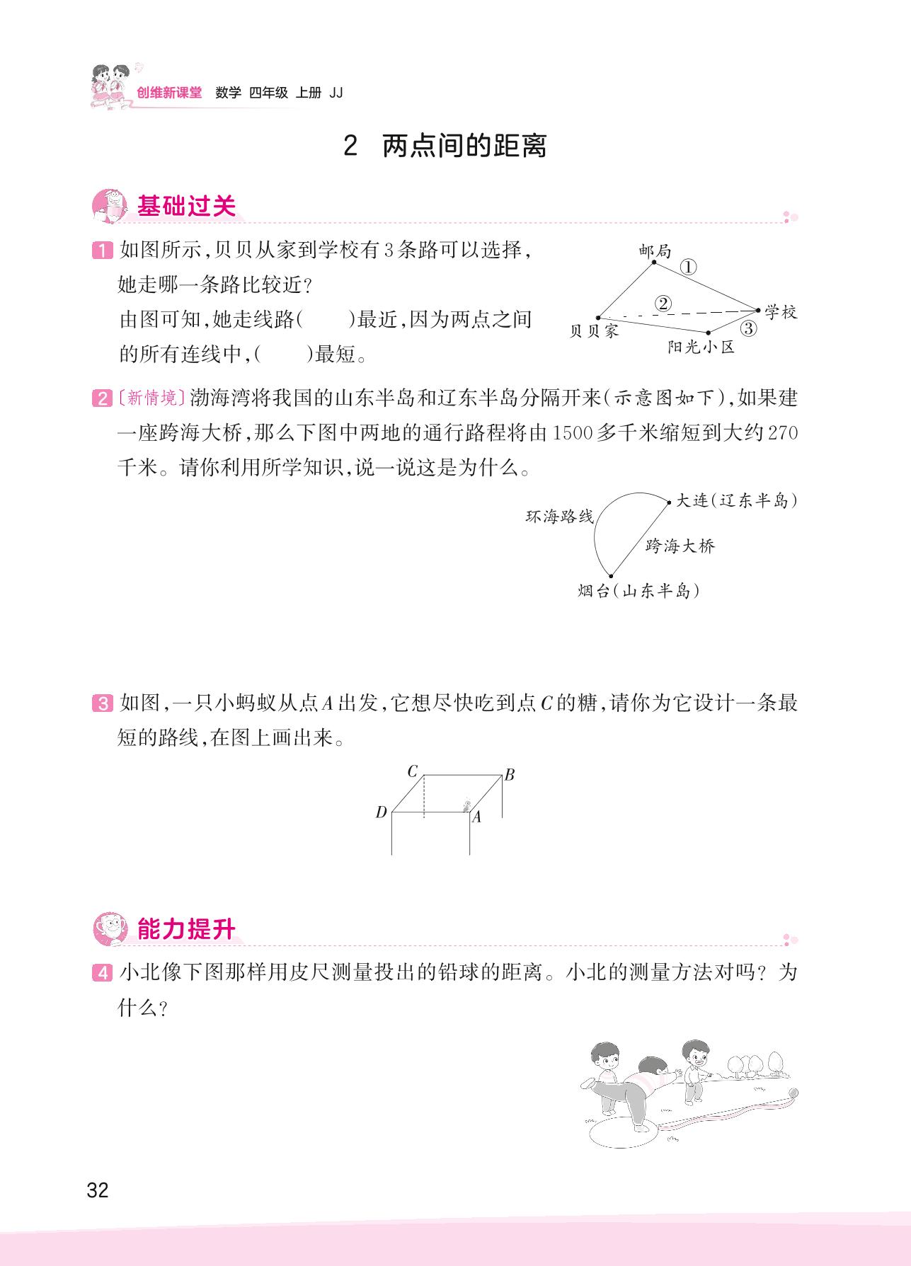 2023上册四年级数学冀教版 四 线和角——2 两点间的距离