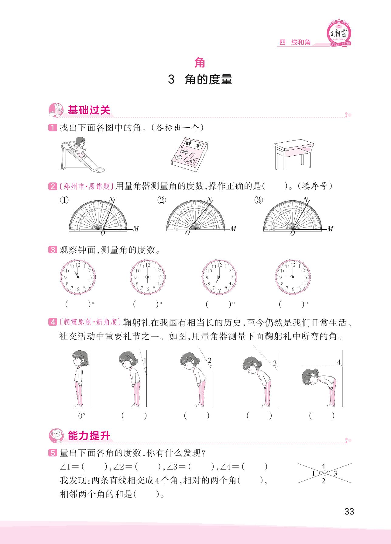 2023上册四年级数学冀教版 四 线和角——3 角的度量