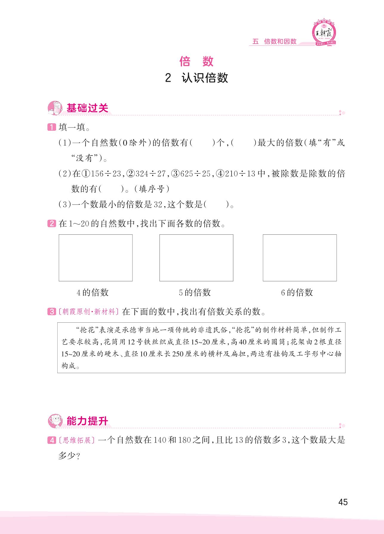2023上册四年级数学冀教版 五 倍数和因数——2 认识倍数