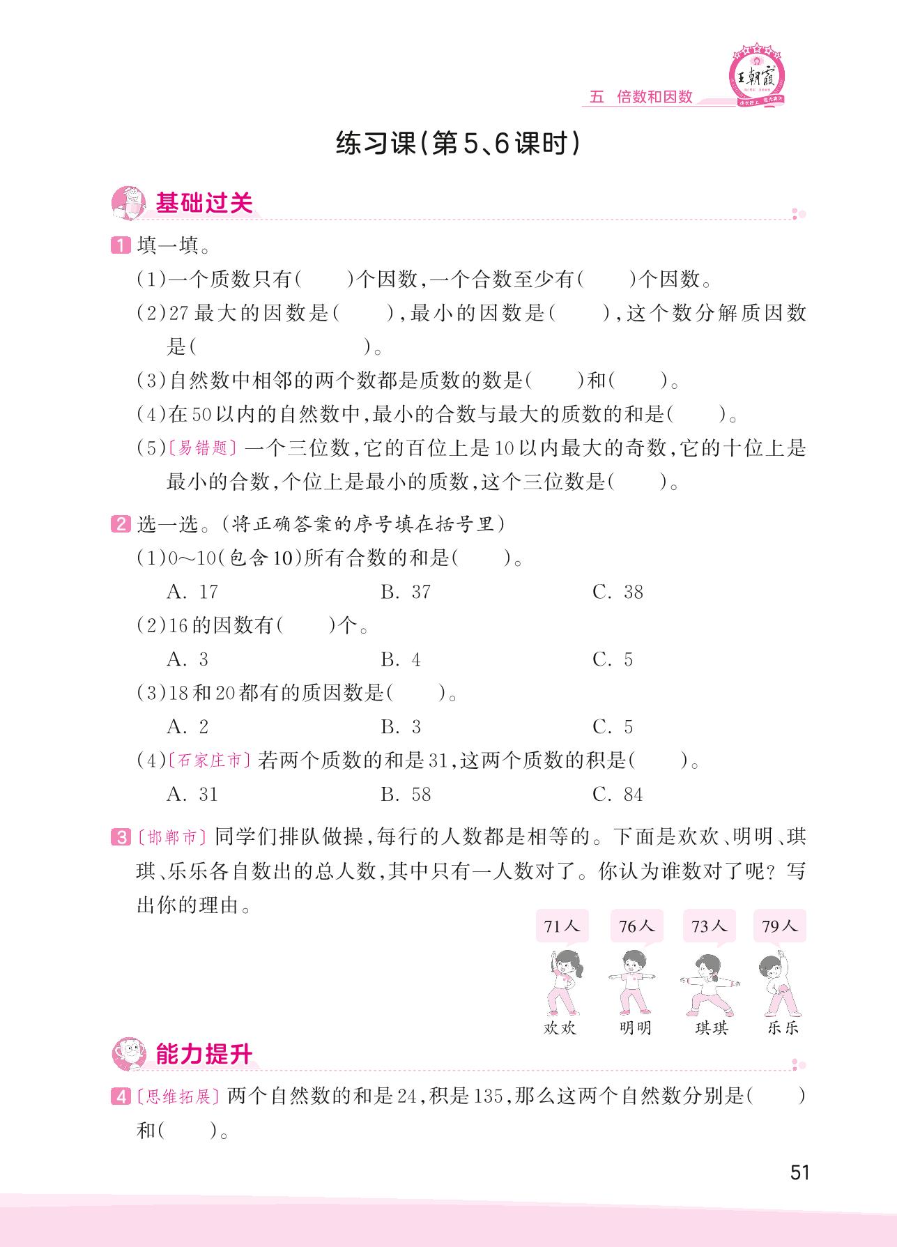 2023上册四年级数学冀教版 五 倍数和因数——练习课(第5、6课时)