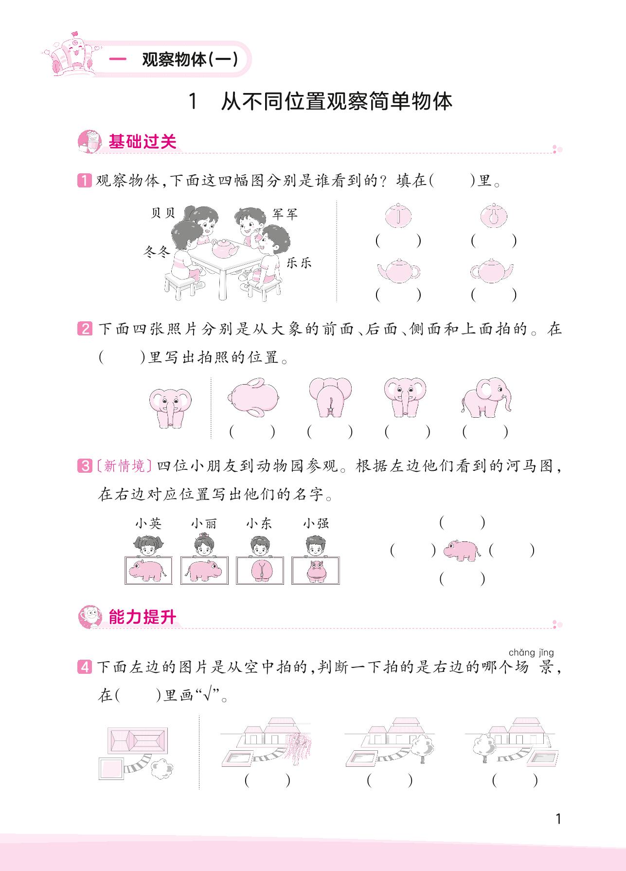 2023上册二年级数学冀教版 一 观察物体(一)——1 从不同位置观察简单物体