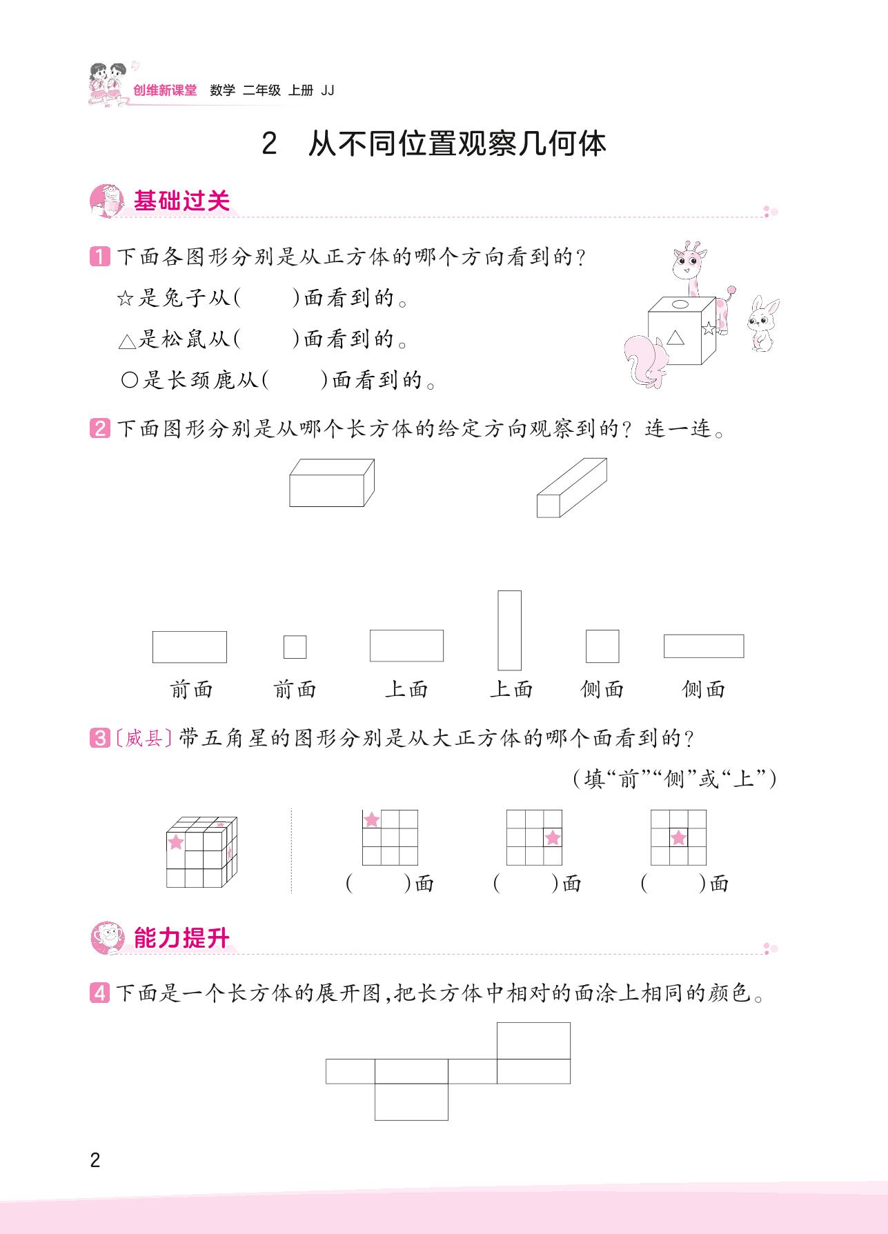 2023上册二年级数学冀教版 一 观察物体(一)——2 从不同位置观察几何体