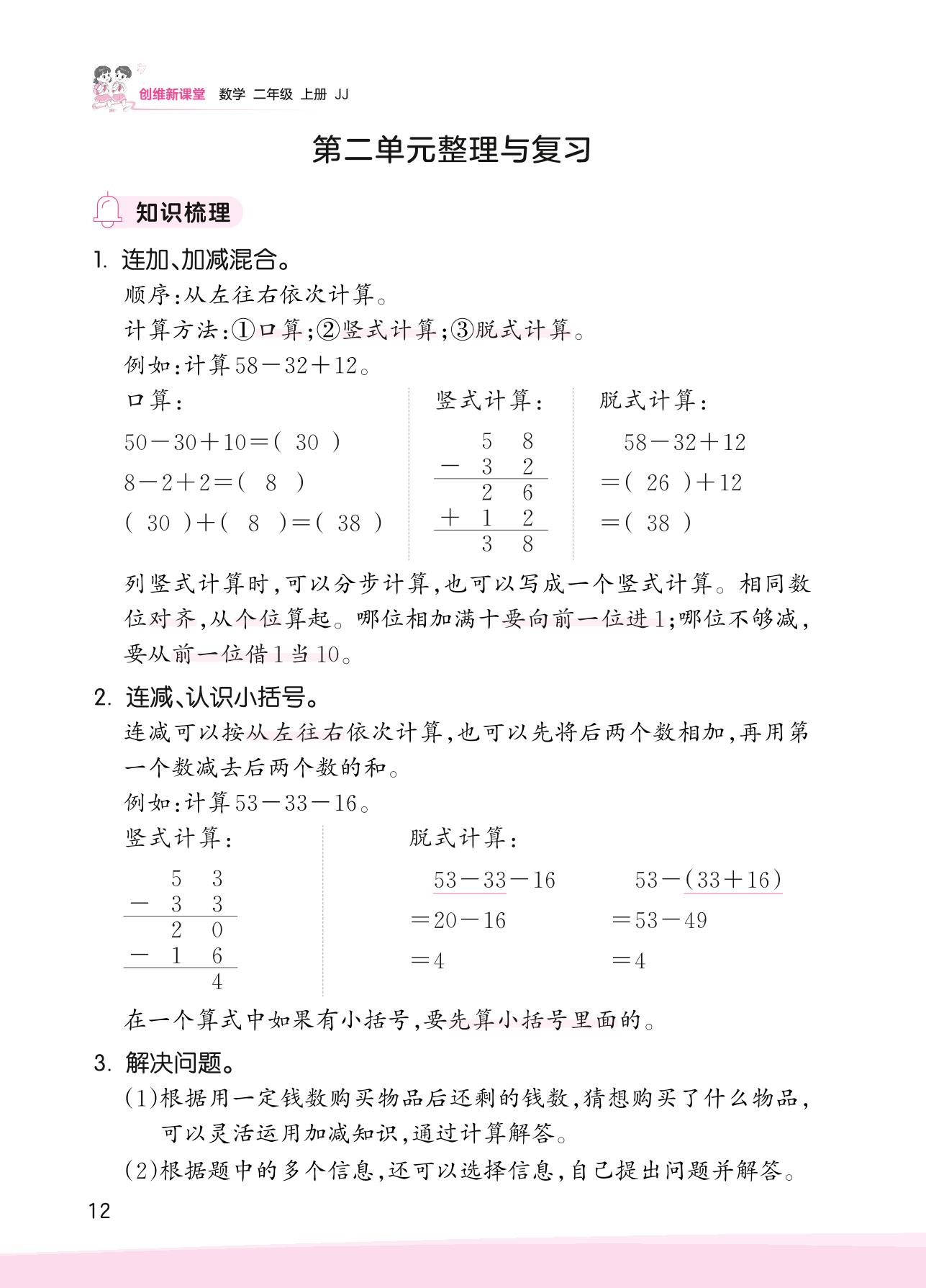 2023上册二年级数学冀教版 第二单元整理与复习
