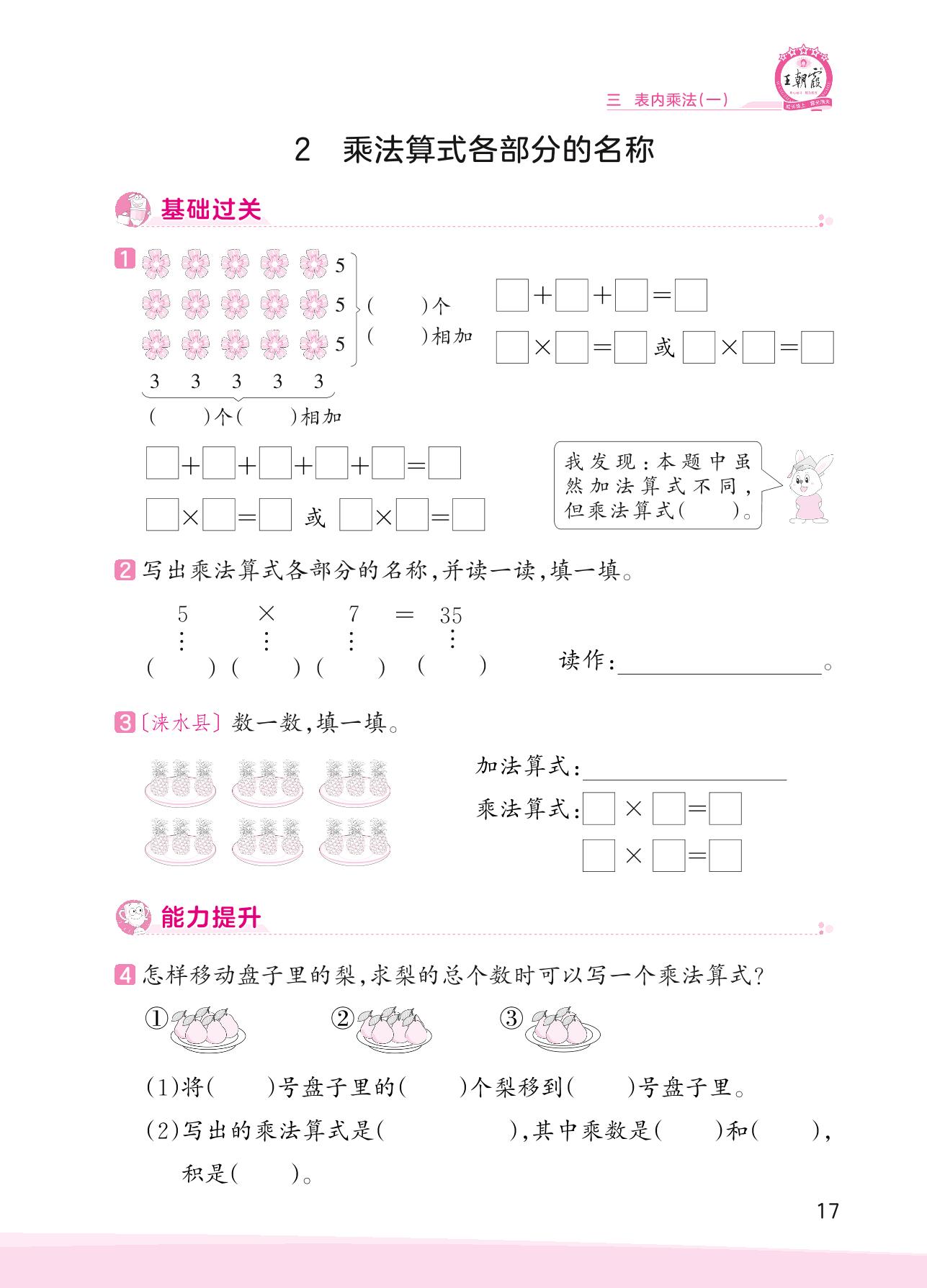 2023上册二年级数学冀教版 三 表内乘法(一)——2 乘法算式各部分的名称