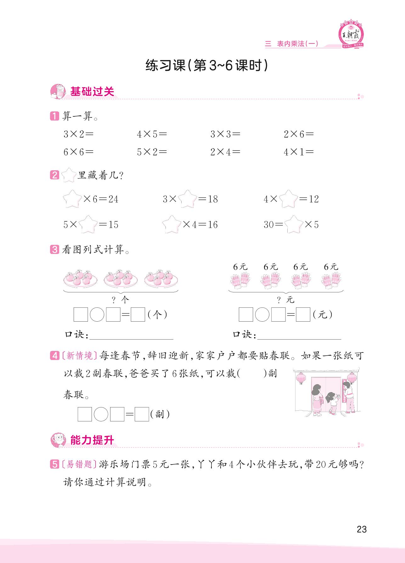 2023上册二年级数学冀教版 三 表内乘法(一)——练习课(第3~6课时)