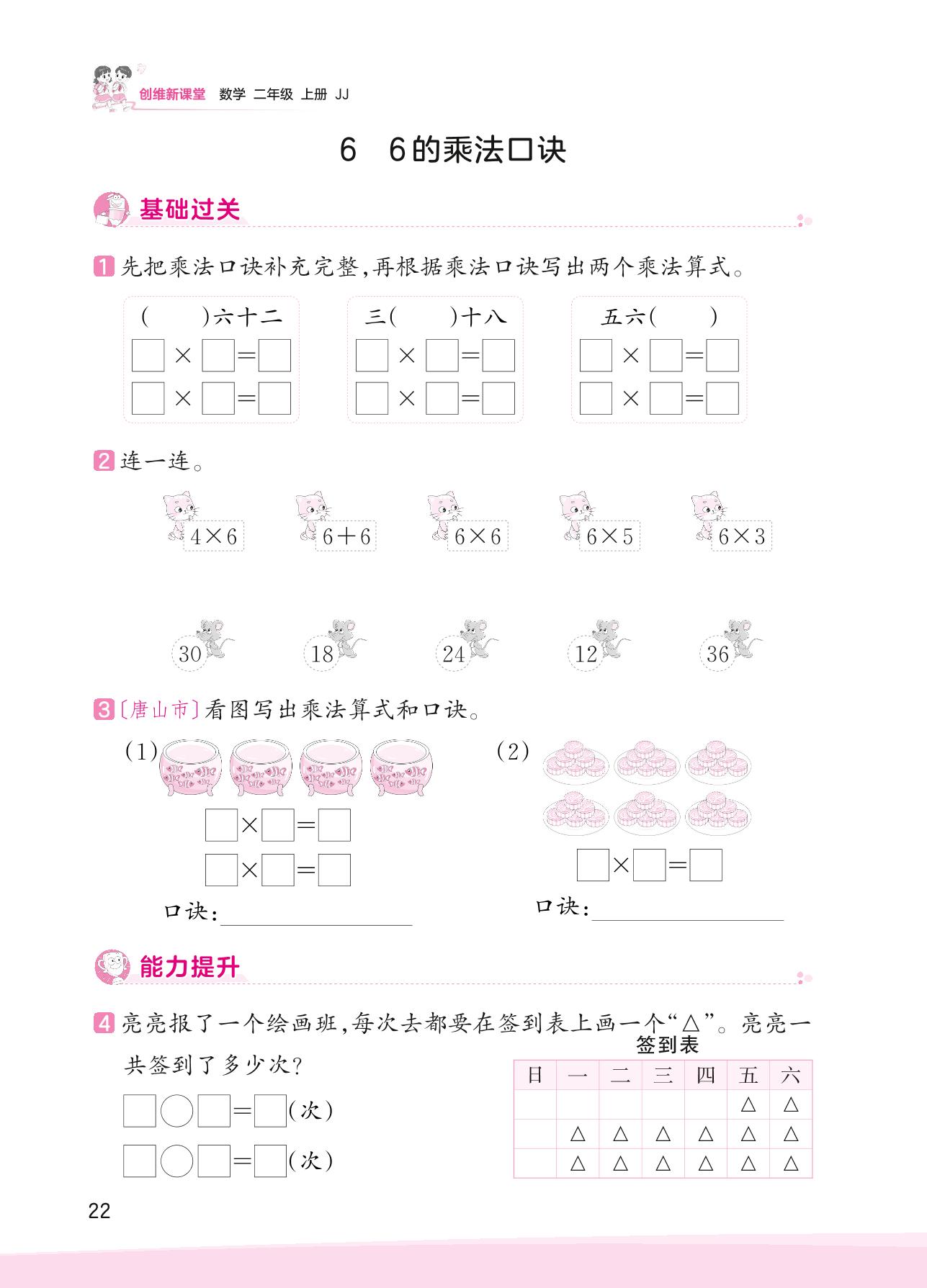 2023上册二年级数学冀教版 三 表内乘法(一)——6 6的乘法口诀